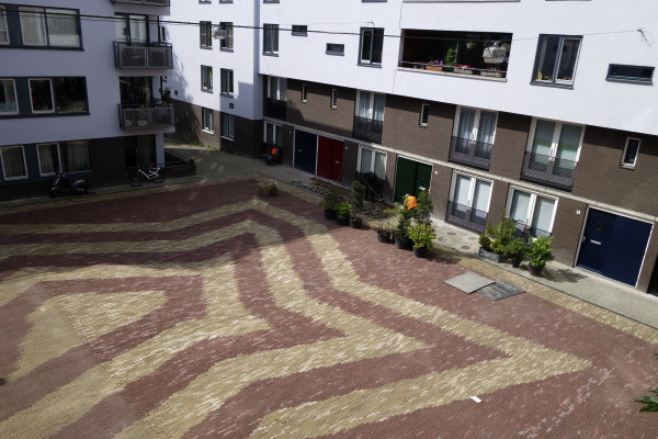 Vandaag starten de reparatiewerkzaamheden op het Februariplein. Voor de werkzaamheden is minstens een week droog weer nodig. De gehele werkzaamheden zullen ongeveer twee weken duren. Bij de woningen is nu een hele rand vrij gemaakt over drie woning. Het zand is secuur weggeveegd. Beschadigingen in de vorig jaar aangebrachte dakbedekking zijn zo te vinden.